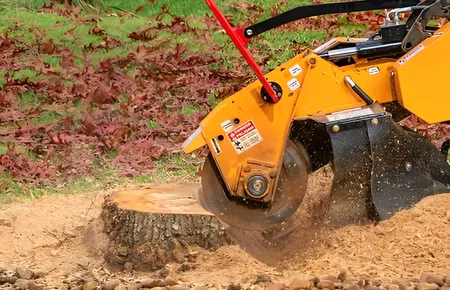 Grinding out tree stumps completely to reclaim space and eliminate trip hazards.